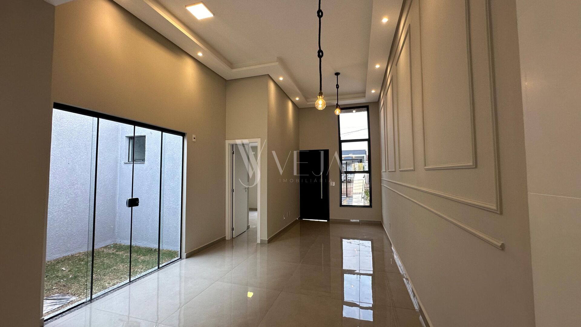 Acabamento com porcelanato, espaços conjugados, sala ampla com pé direito alto, fiação elétrica para ar condicionado em todos os dormitórios, dreno na suíte.